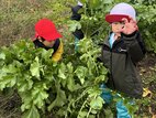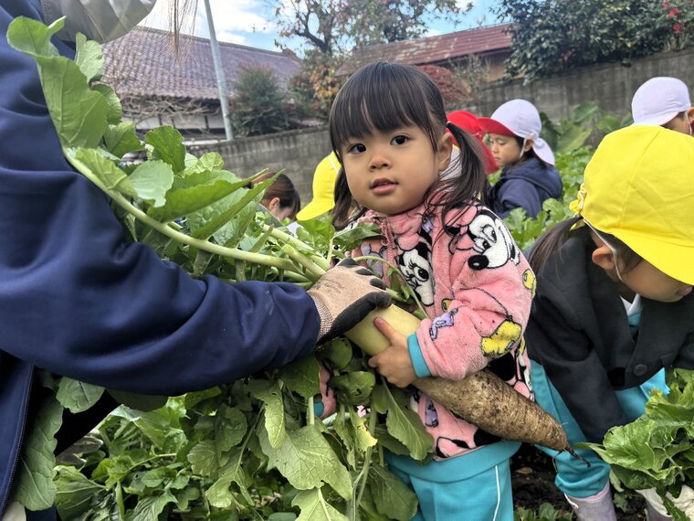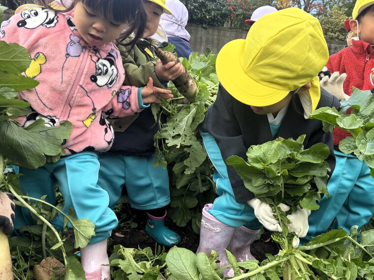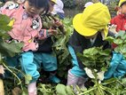 年少さんから年長さんまで、大きな根っこを一生懸命収穫していました